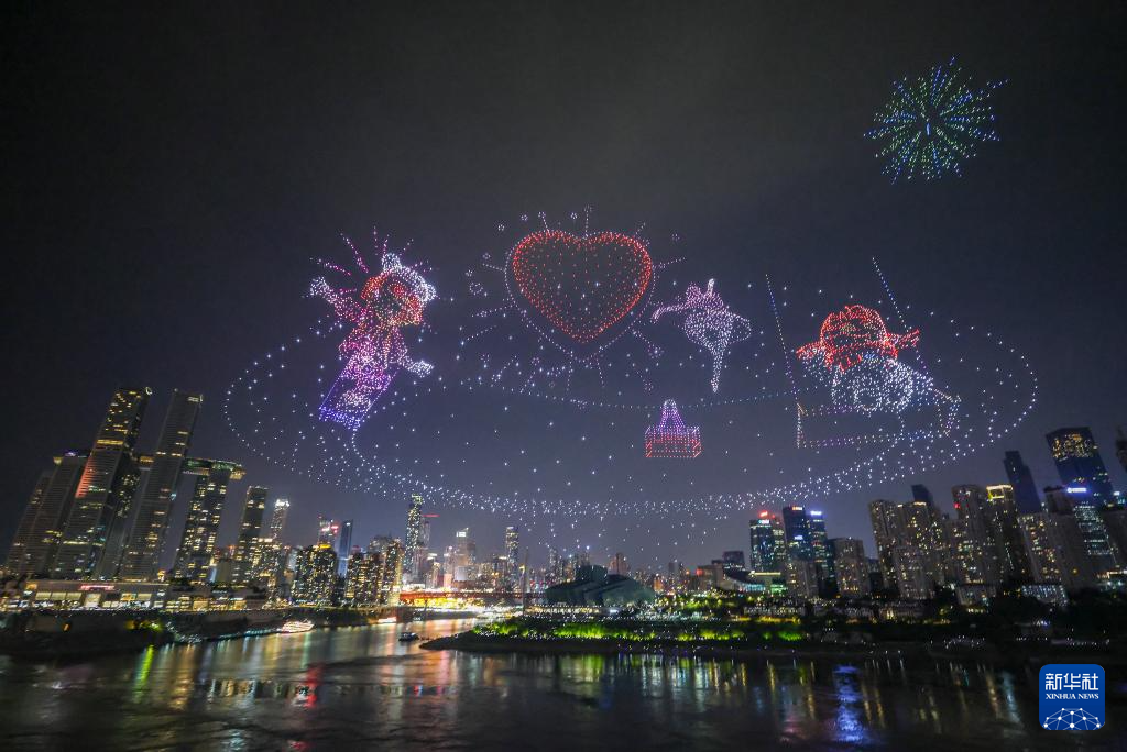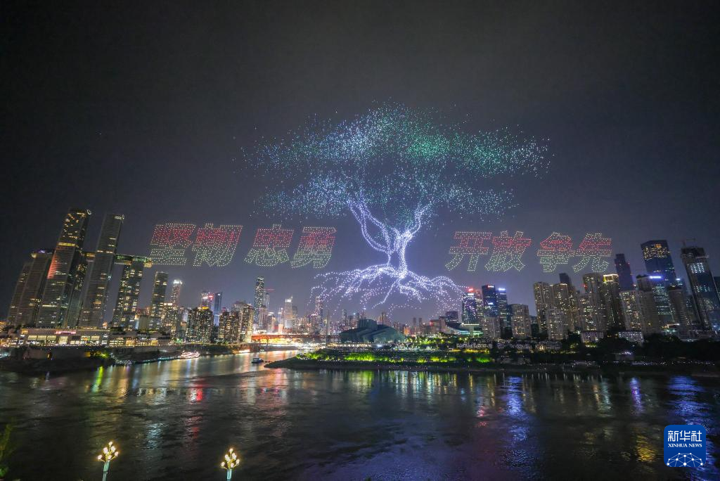 6月17日晚,重慶舉行超大規模無人機燈光秀表演,由11787架無人機組成的雙編隊飛行從重慶市南岸區彈子石廣場起飛,創造了“最多無人機組成的空中圖案”吉尼斯世界紀錄。